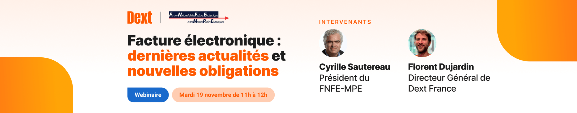Cyrille Sautereau, président du FNFE-MPE, et Florent Dujardin, directeur général de Dext France, analyseront ces évolutions et vous aideront à comprendre leurs conséquences lors d'un webinaire inédit le mardi 19 novembre de 11h à 12h.